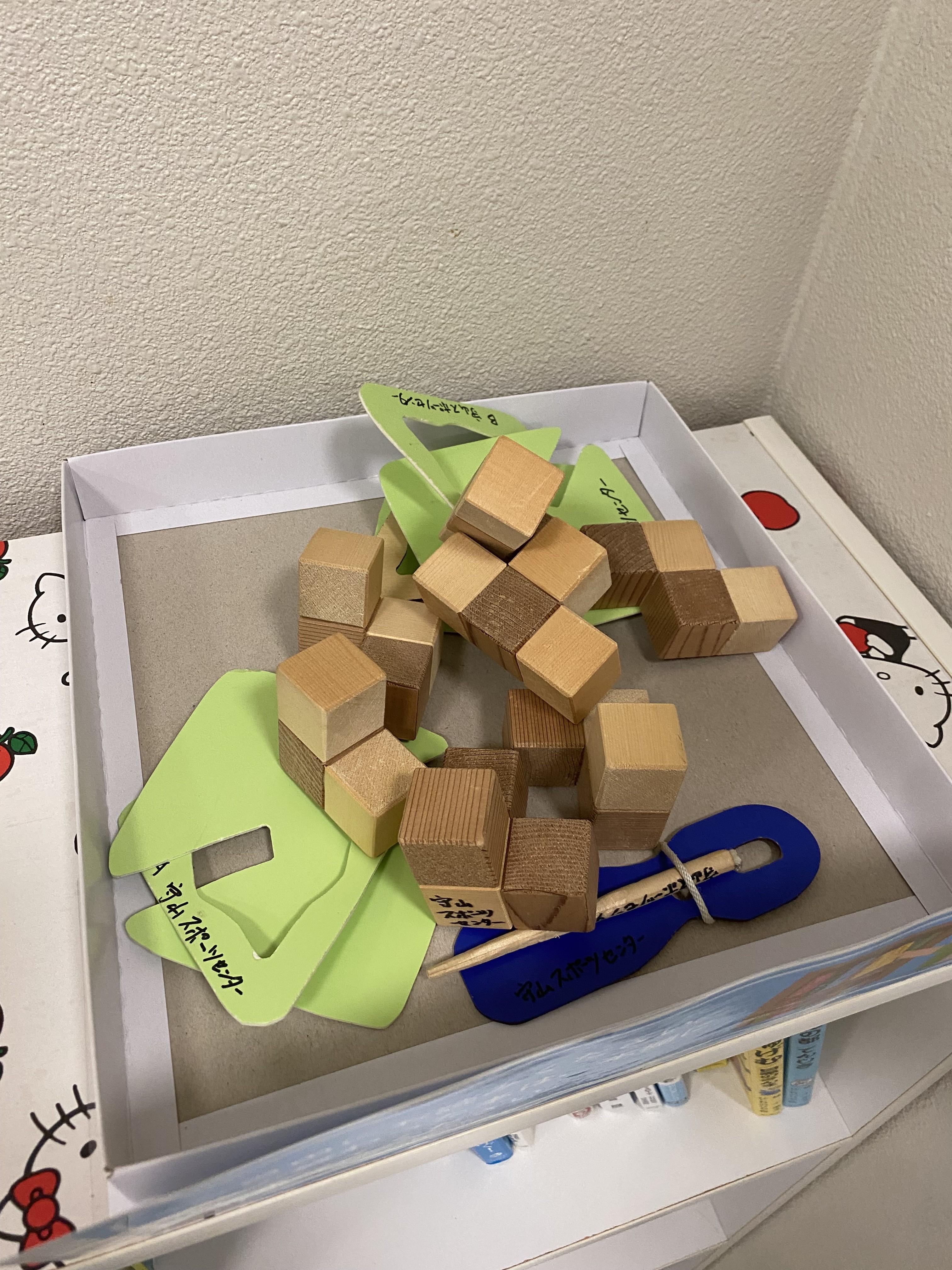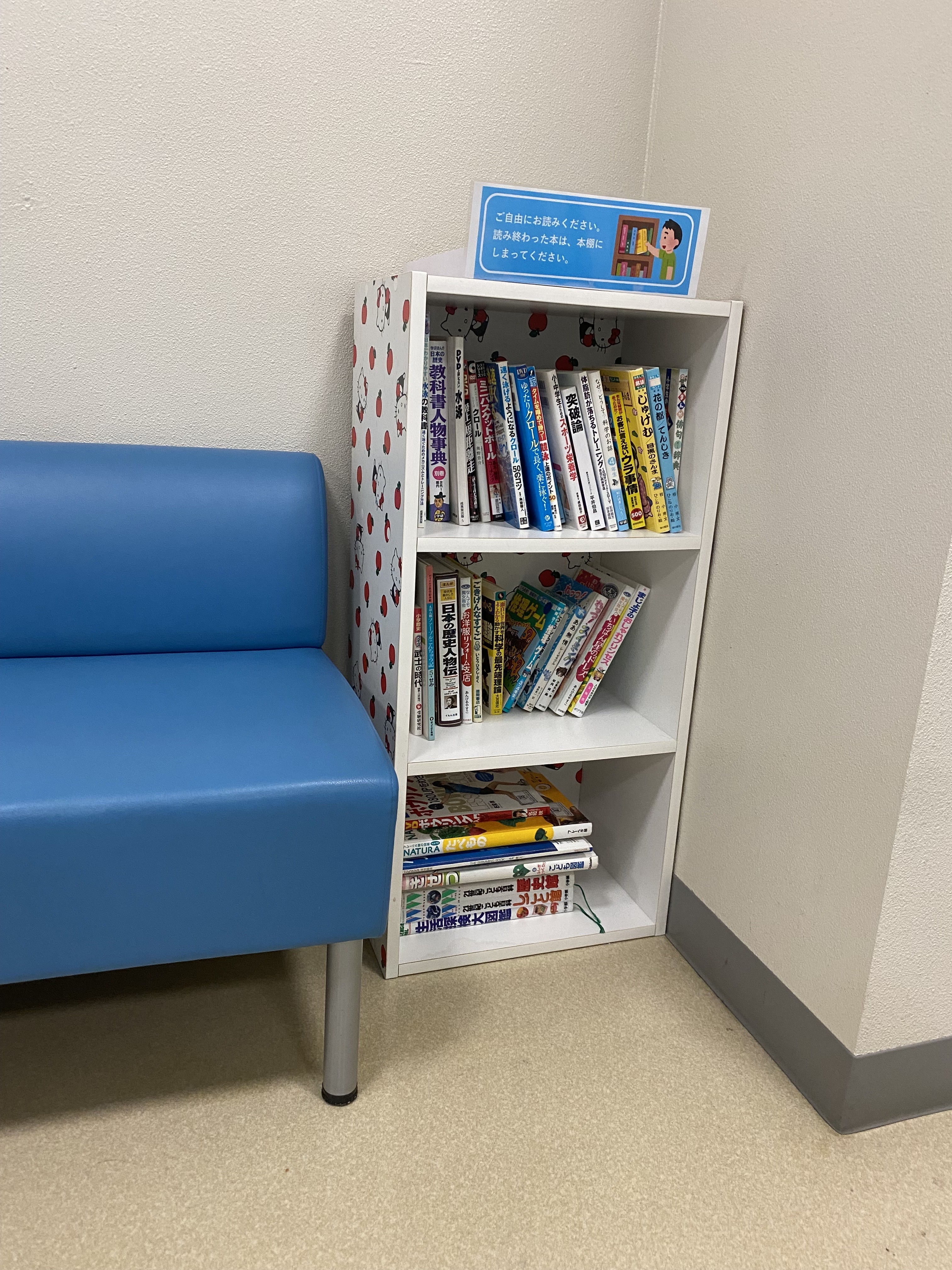 プールの隣にある、談話室に本や、少し頭の使うブロックパズルなどを置きました。
